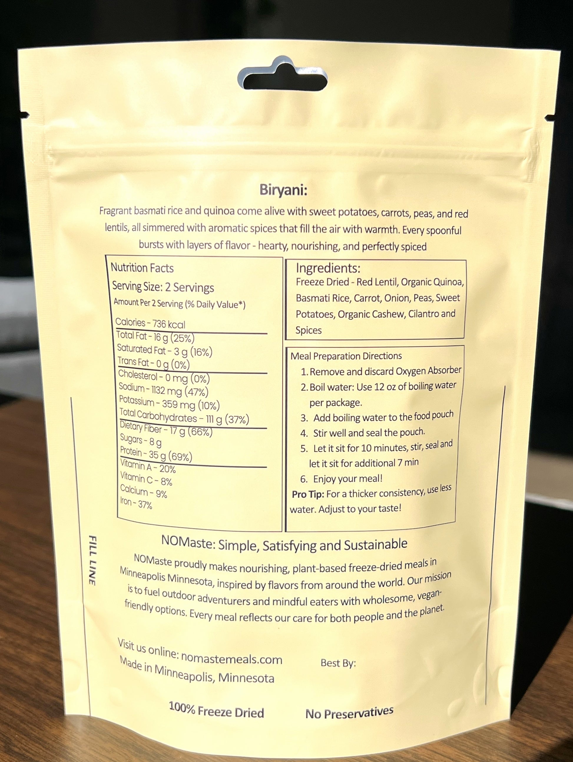 A flavorful, protein-packed dish made with red lentils, quinoa, and fragrant basmati rice, enriched with cashews, and packed with flavors. This hearty, nutrient-dense meal is perfect for backpacking, offering both energy and bold, satisfying flavors. 🍛🥾